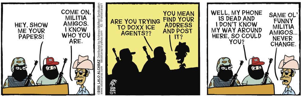La Cucaracha: The toon zone is for trolling and retrolling pendejos only October 23, 2025 by LALO ALCARAZ Mas…La Cucaracha: The toon zone is for trolling and retrolling pendejos only