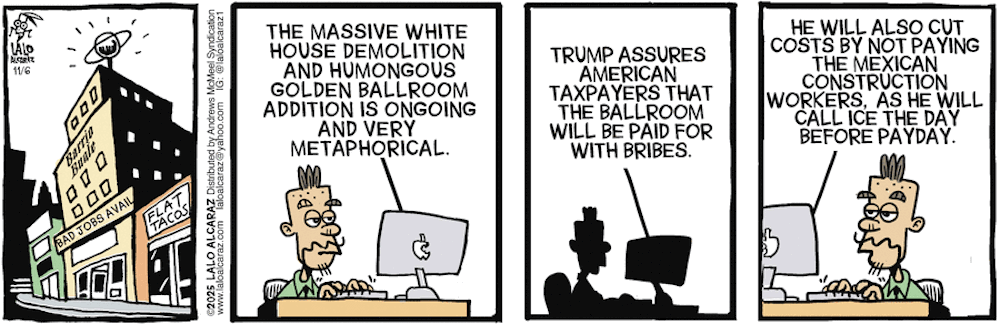 La Cucaracha: If it’s Wednesday, we must be muertos November 6, 2025 by LALO ALCARAZ Mas…La Cucaracha: If it’s Wednesday, we must be muertos