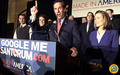 (PNS reporting from THE HEARTLAND) Republican presidential candidate Rick Santorum swept the nominating contests in Missouri, Minnesota and Colorado Tuesday night, claiming, “My campaign is far from pooped out.”