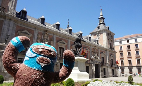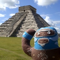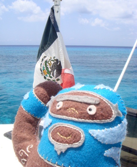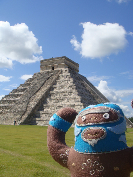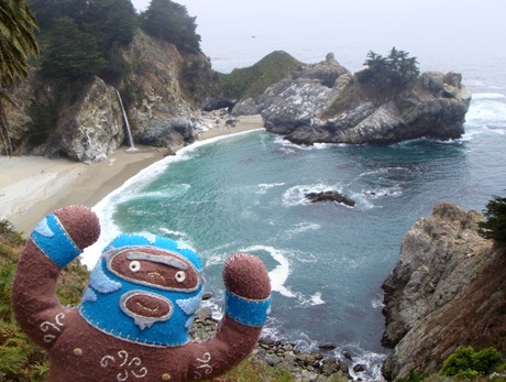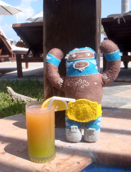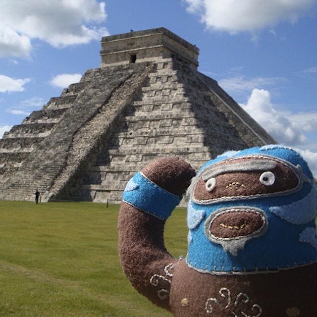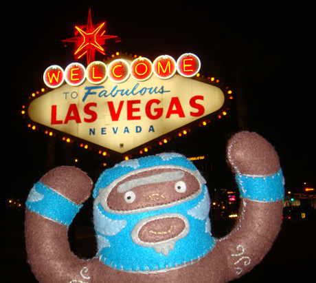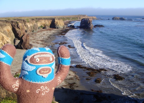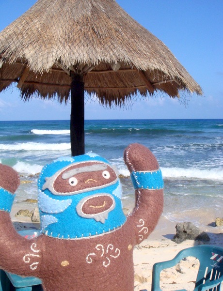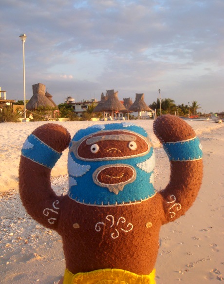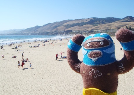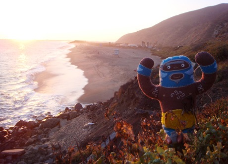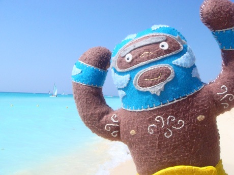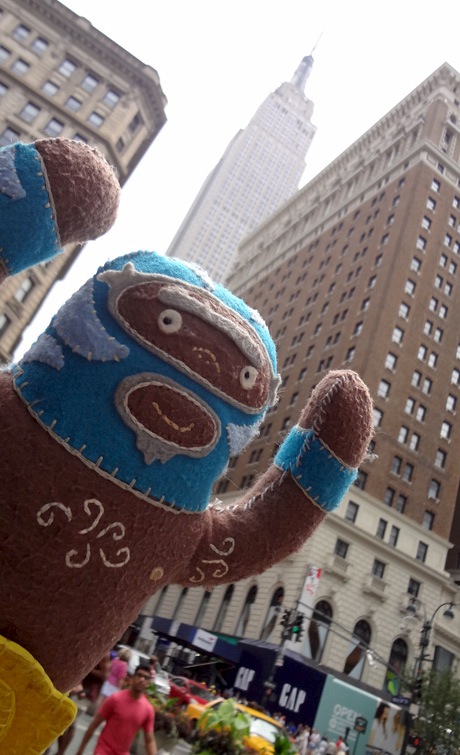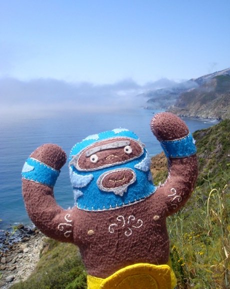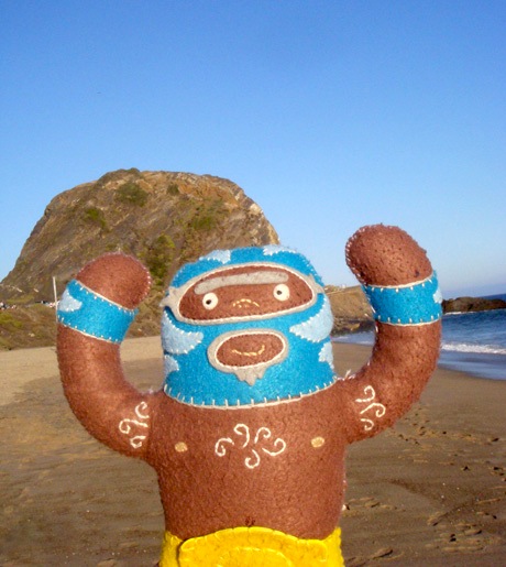He’s dangerous. He’s blue. He’s plush luchador Peligrozo Azul by artist Dennise Rodriguez and he had a very cool summer. Here are his photos.