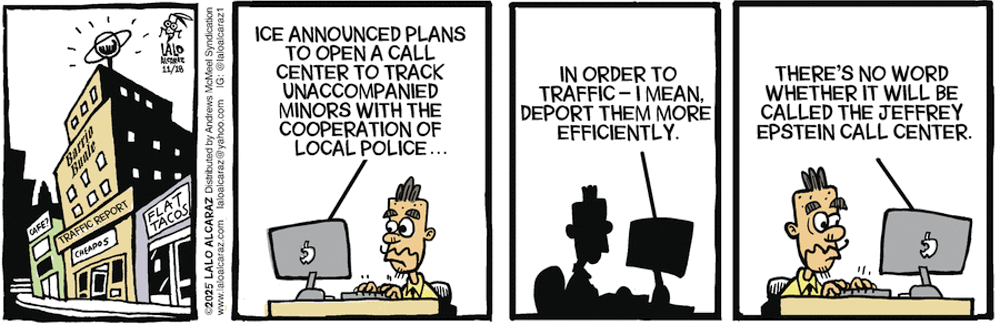 La Cucaracha: But what about the children? November 19, 2025 by LALO ALCARAZ Mas…La Cucaracha: But what about the children?