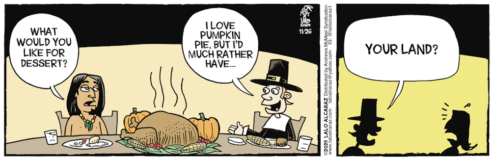 La Cucaracha: Imma pass on the pumpkin pie, but … November 27, 2025 by LALO ALCARAZ Mas…La Cucaracha: Imma pass on the pumpkin pie, but …